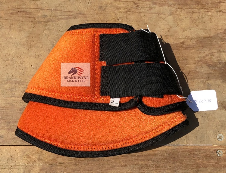 Orange with black trim neoprene bell boots. Size Large.