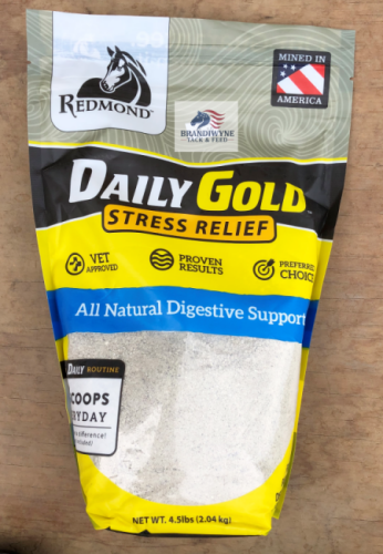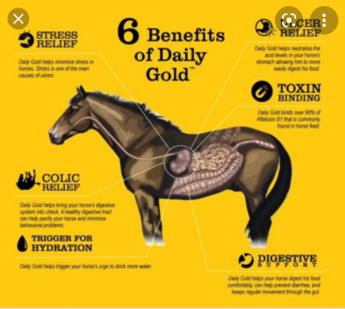 Daily Gold Stress Relief buffers acid, soothing stomach upset. The loose minerals in Daily Gold help alleviate equine ulcers and other common issues for horses such as diarrhea, lack of appetite, and stress.
