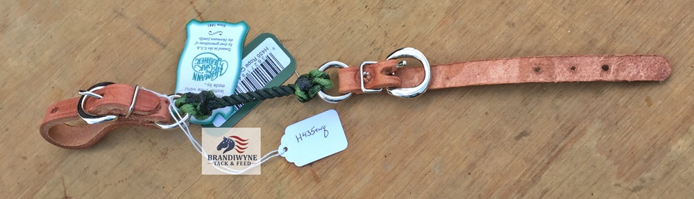 Harness leather curb with turquoise rope. Made in America with the finest Hermann Oak Leather. The quality is incredible. (Please note the colors of the rope may not be exact. We have had green, dark blue, and turquoise in stock.)