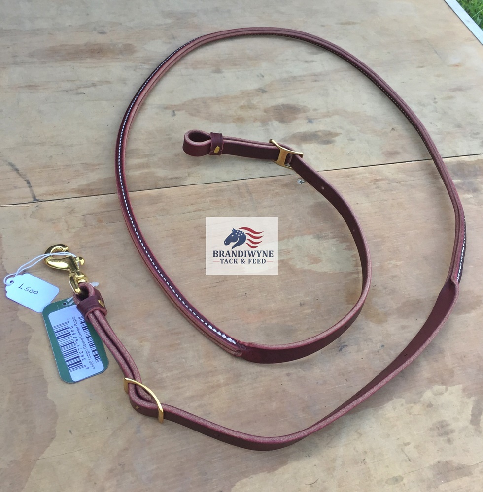 Latigo leather roping rein. Rolled center is doubled and stitched. 3/4" X 7'. Brass hardware. The quality is incredible. Made in America.