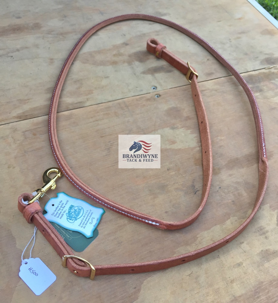 Harness leather roper rein. Rolled center is doubled and stitched. 3/4" X 7'. Brass hardware. Made in America with the finest Hermann Oak harness leather. The quality is incredible.
