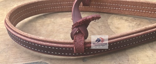 Harness leather with latigo overlay tiedown noseband. Latigo hanger straps. Solid brass hardware. Made in America with the finest Hermann Oak harness leather. The quality is incredible.