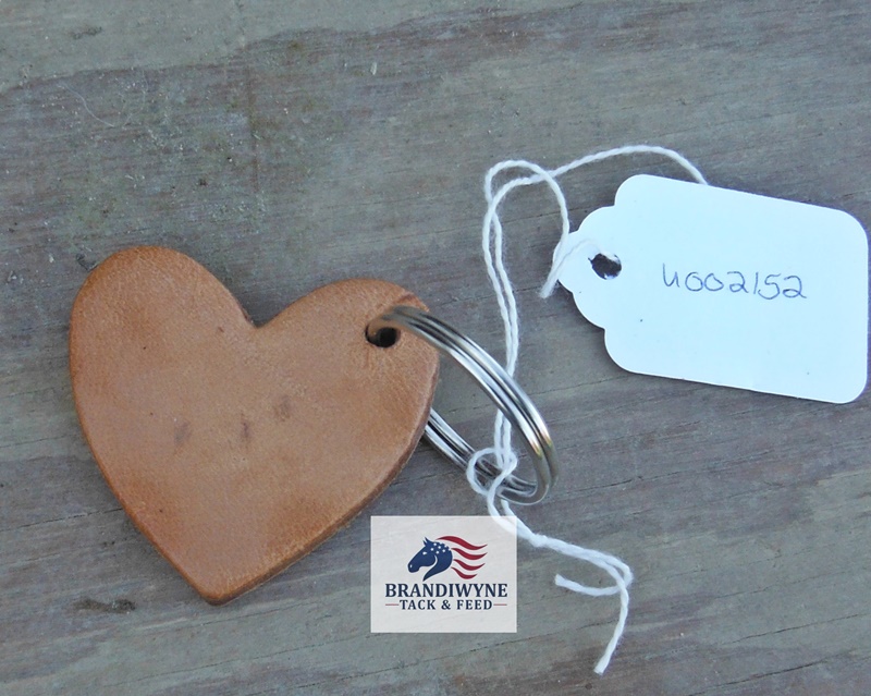 Natural/raw leather heart-shaped keychain.