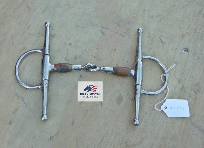 Used full cheek snaffle. 5" mouth. Copper rollers on the bars. Center swivels freely for more feel. No maker's mark.