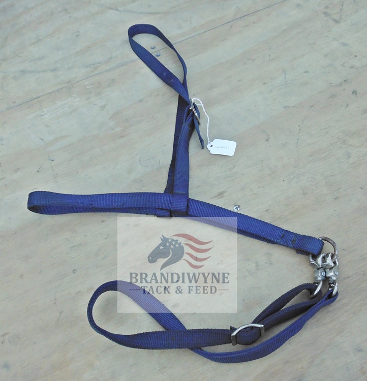 Used navy blue tiedown noseband with strap. Ring shows rust, otherwise great shape and ready to use.