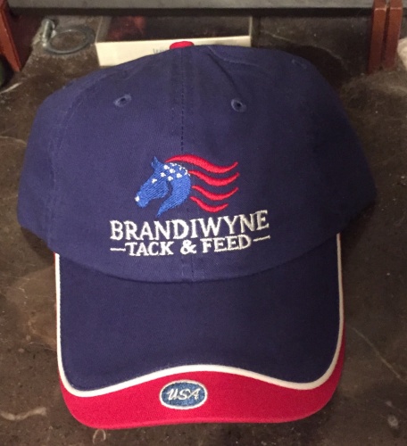 Beautiful red, white, and blue ball cap with cloth back and the Brandiwyne logo embroidered on the front.