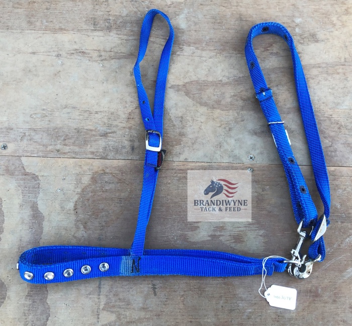 Used royal blue nylon tiedown noseband and tiedown